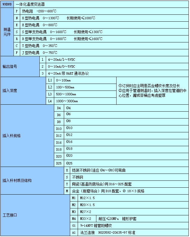输出信号:4~20mA、可选带基于HART的通讯协议