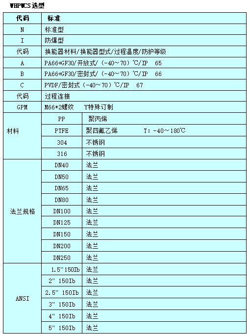 WHPWCS超声波液(物)位计是一种非接触式的测量仪表,具有自动功率调整、增益控制、温度补偿、对干扰有一定抑制特点的智能仪表,特点是防腐型一体式雷达天线,盲区小,安装简单,主要应用于化工,冶炼,食品加工等行业。例如:盐酸,硝酸,硫酸,碱液等各种强腐蚀性液体。测量范围:20米。 过程连接:螺纹,法兰 。过程温度:(-60~120)℃。过程压力:(-0.1~0.3)MPa 。精度:-3~+3mm.重复性:-1~+1mm.频率范围:26GHz.防爆等级:Exia IIC T6 Ga.防护等级:IP67.信号输出:(4~20)Ma/HART(两线/四线)RS485//Modbus。